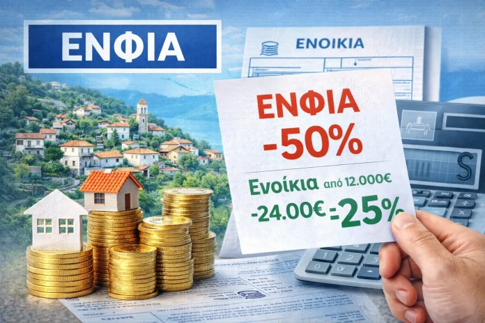 Ανοίγει νέο παράθυρο ελαφρύνσεων στη φορολογία ακινήτων, με δύο αλλαγές που αγγίζουν άμεσα ιδιοκτήτες: μεγάλη μείωση στον ΕΝΦΙΑ για κύριες κατοικίες σε μικρούς οικισμούς και χαμηλότερο συντελεστή φόρου για ένα «μεσαίο» κομμάτι εισοδήματος από ενοίκια. Το ζητούμενο δεν είναι μόνο το όφελος, αλλά και το ποιοι πιάνουν τα κριτήρια και πώς θα εφαρμοστεί στην πράξη. Σε αυτό το άρθρο θα δεις καθαρά τι ισχύει, ποια είναι τα σημεία-κλειδιά και τι να προσέξεις.