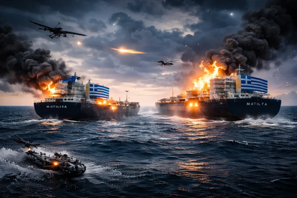 Σύμφωνα με πληροφορίες που δημοσιεύθηκαν διεθνώς, δύο δεξαμενόπλοια —το Delta Harmony (διαχείριση Delta Tankers) και το Matilda (διαχείριση Thenamaris)— δέχθηκαν πλήγματα κοντά στο Νοβοροσίσκ, ενώ κατευθύνονταν προς τερματικό φόρτωσης στην ρωσική ακτή.