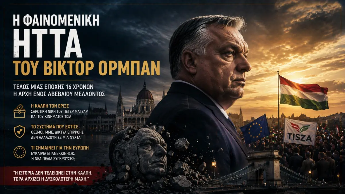 Ο Βίκτορ Όρμπαν έχασε την εξουσία μετά από 16 χρόνια κυριαρχίας στην Ουγγαρία, σε μια εκλογική αναμέτρηση που κατέληξε σε βαριά και καθαρή ήττα για το Fidesz και σε σαρωτική νίκη για το Tisza του Πέτερ Μαγυάρ. Οι πιο έγκυρες διεθνείς αναφορές μιλούν για αποτέλεσμα που όχι μόνο έριξε έναν πρωθυπουργό, αλλά έσπασε ένα πολιτικό μοντέλο που για χρόνια παρουσιαζόταν σχεδόν ανίκητο.