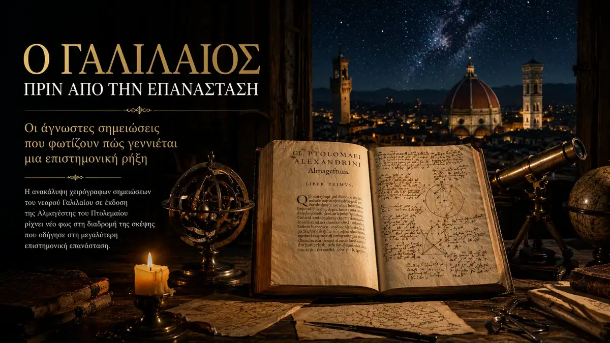 Οι σημειώσεις που αποδίδονται στον νεαρό Γαλιλαίο σε μια έκδοση της Αλμαγέστης δεν αλλάζουν την ιστορία της επιστήμης επειδή αποκαλύπτουν ένα κρυφό μυστικό. Την αλλάζουν —ή μάλλον την φωτίζουν— επειδή μας επιτρέπουν να δούμε καθαρότερα πώς γεννιέται η ρήξη. Όχι από άγνοια του παλιού κόσμου, αλλά από την ακριβή γνώση του. Όχι από εύκολη ανταρσία, αλλά από σκληρή πνευματική πειθαρχία.