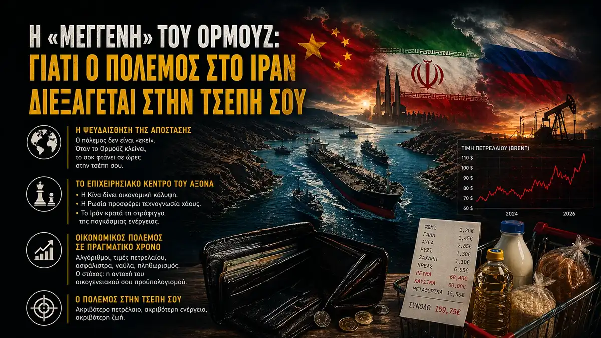 Αυτή είναι η ουσία της «μέγγενης» του Ορμούζ. Η ελευθερία σου δεν απειλείται μόνο στα πεδία μάχης. Απειλείται και εκεί όπου η γεωστρατηγική ένταση μετατρέπεται σε ακριβότερη ενέργεια, ακριβότερη μεταφορά, πιο ακριβό ράφι και πιο εύθραυστη καθημερινότητα. Όποιος νομίζει ότι ο πόλεμος στο Ιράν αφορά μόνο τη Μέση Ανατολή, έχει ήδη χάσει τη μισή αλήθεια. Η άλλη μισή γράφεται στο πρατήριο, στο τιμολόγιο και στο σούπερ μάρκετ.
